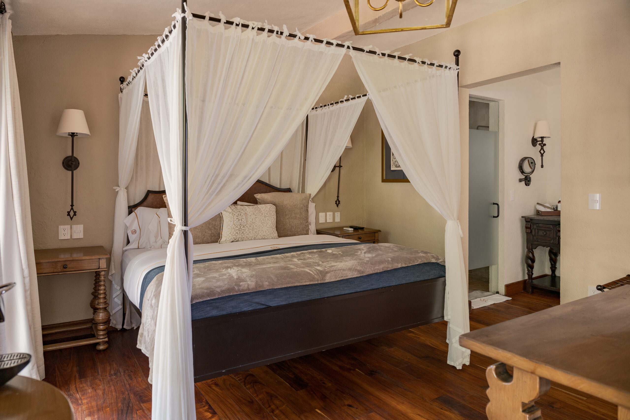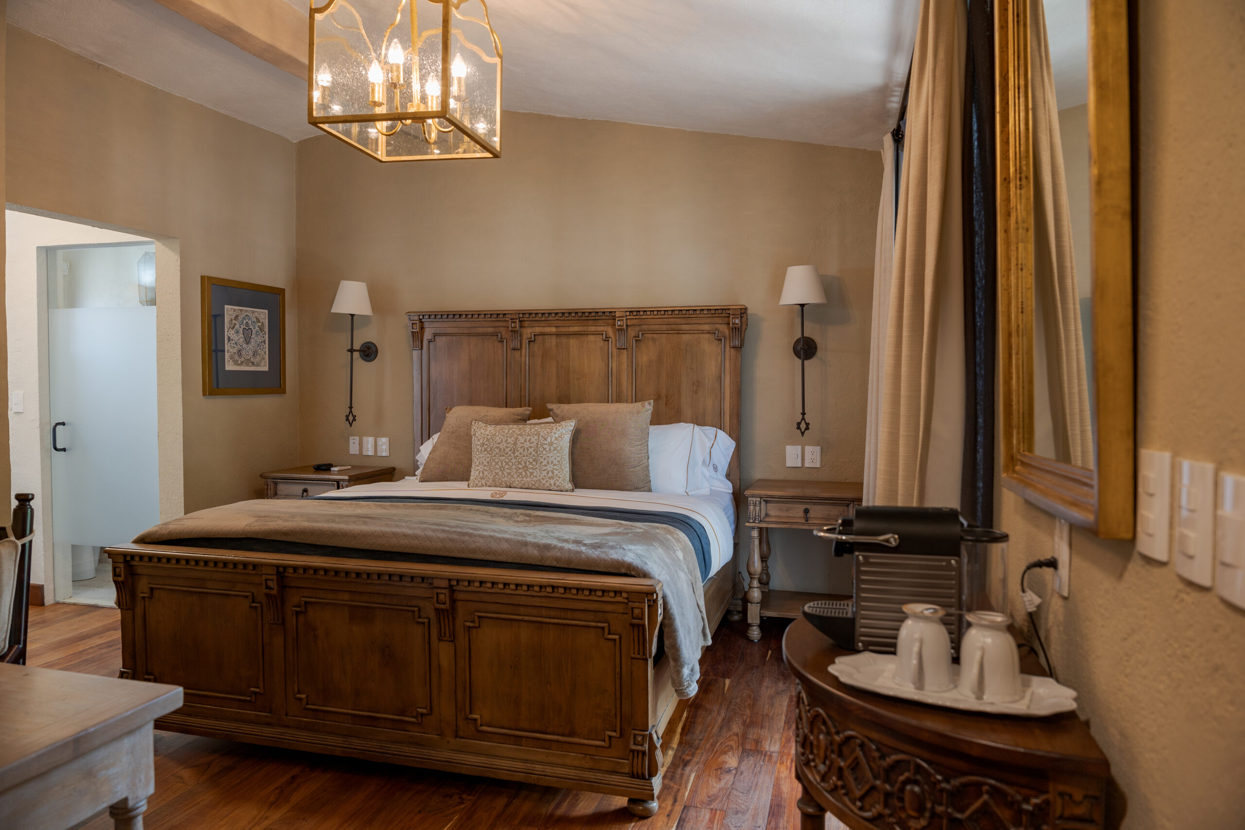 MASTER SUITE – De 58 m2 para hasta 3 personas. Amplia y colonial, con vista abierta a los jardines campestres, capilla y albercas.